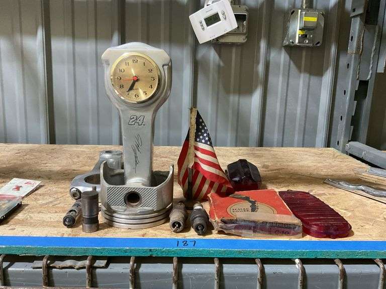 LOT 187 - Engine Parts, clock, misc